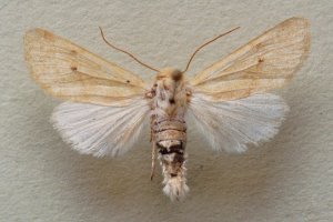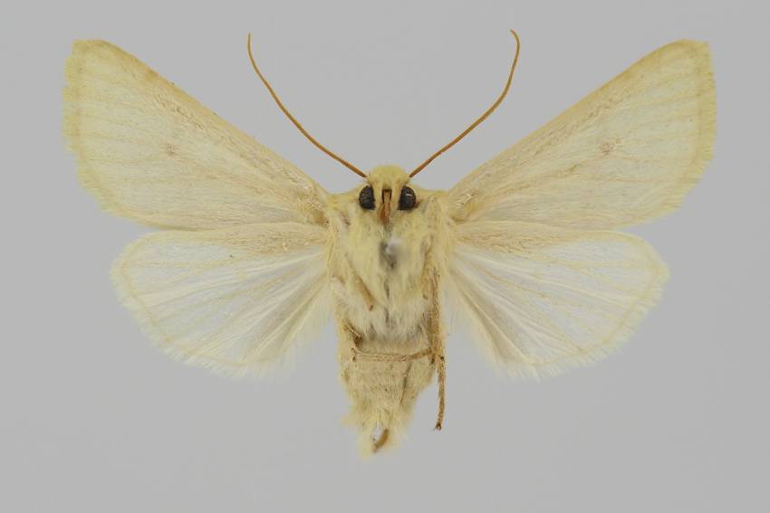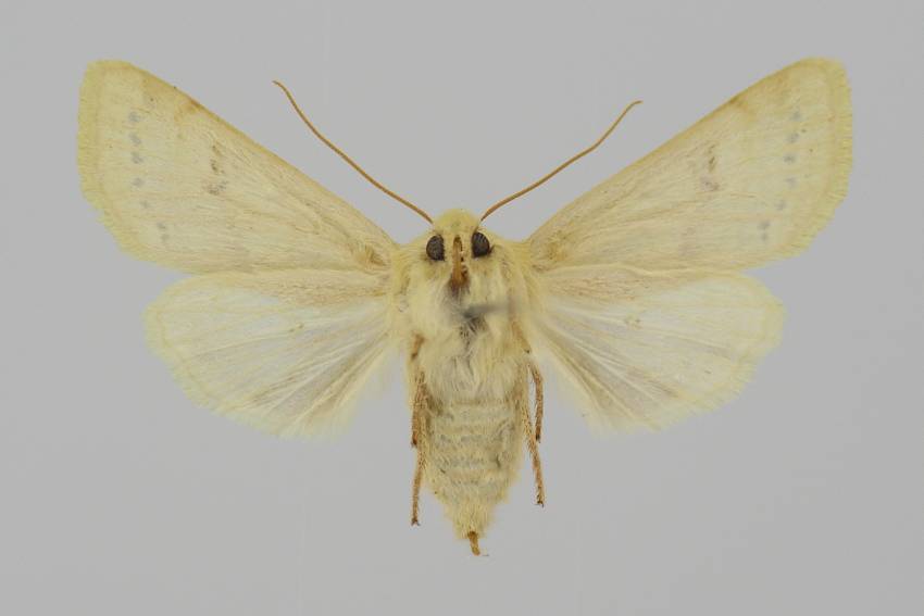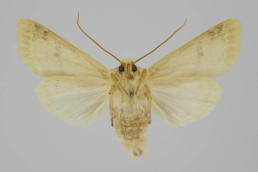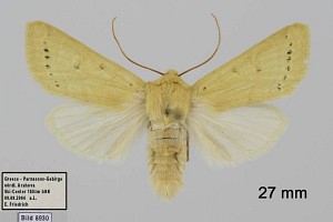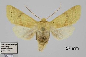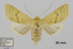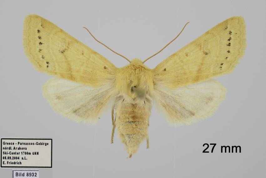 A. lactiflora sp. n. (19 a) steht der vorigen [A. egorovi O. B.-H.] etwas nahe; die Flügelform ist etwas schmäler, der Saum schräger. Grundfarbe hell sahnegelb, sehr hell bräunlich bestreut; subbasal in der Zelle ein hellbrauer Punktfleck, beide Querlinien doppelt, äußerst schwach hellbräunlich, etwas lichter ausgefüllt; Ringmakel unsichtbar, Nierenmakel sehr schwach heller gesäumt, an ihrem unteren Rand, fast nur mit der Lupe sichtbar, 5–6 schwarzbraune Schüppchen; in sie tritt der wie bei egorovi rechtwinklig geknickte Mittelschatten ein von der gleichen lichtbräunlichen Farbe; statt der Wellenlinie, die nur unter dem Vrd durch hellbräunliche Innenbestäubung angedeutet ist, findet sich eine Reihe kleiner braunschwarzer Zwischenaderpunkte, die zwischen 4 und 6 etwas größer werden und Dreiecksform annehmen; die feine gewellte Saumlinie licht hellbräunlich; Fransenbasislinie etwas heller als der Grund. Hflgl rein weiß mit hellgelblichen Adern und Saumlinie. 1 ♂ von Diarbekr in coll. DRAUDT.“