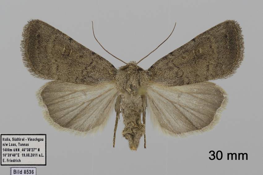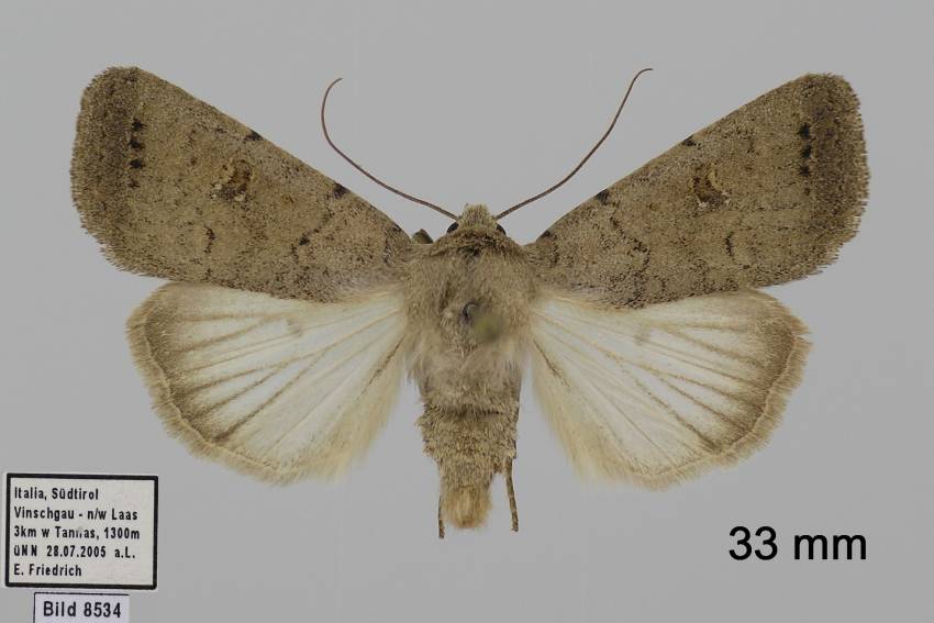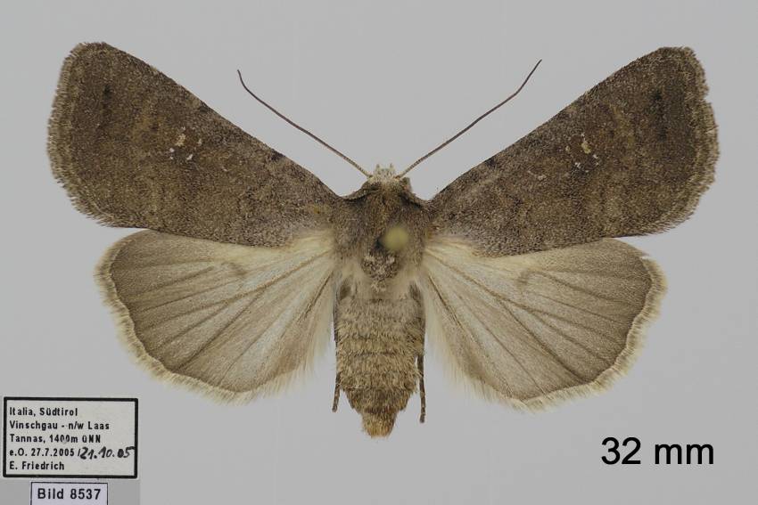 1-2, ♂ und ♀: Italien, Südtirol, Vinschgau, Tannas bei Laas, 1400 m, leg. ♀ am Licht 1. August 2005, e.o. (Studiofotos am 14. Oktober 2005: Egbert Friedrich), cult. & det. Egbert Friedrich