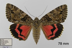 2, ♀ Catocala sponsa: Deutschland, Bayern, Aichach-Sulzbach, Lichtfang, 18. Juli 1976 (leg., det. & fot.: Michel Kettner)