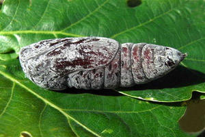1-6: Frankreich, Languedoc-Roussillon, Hérault, St. Gély-du-Fesc, (Funddata siehe Raupe: 5-12) (Studiofotos Kokon und Puppe am 14. Juni 2010: Allan Liosi) [Forum]
