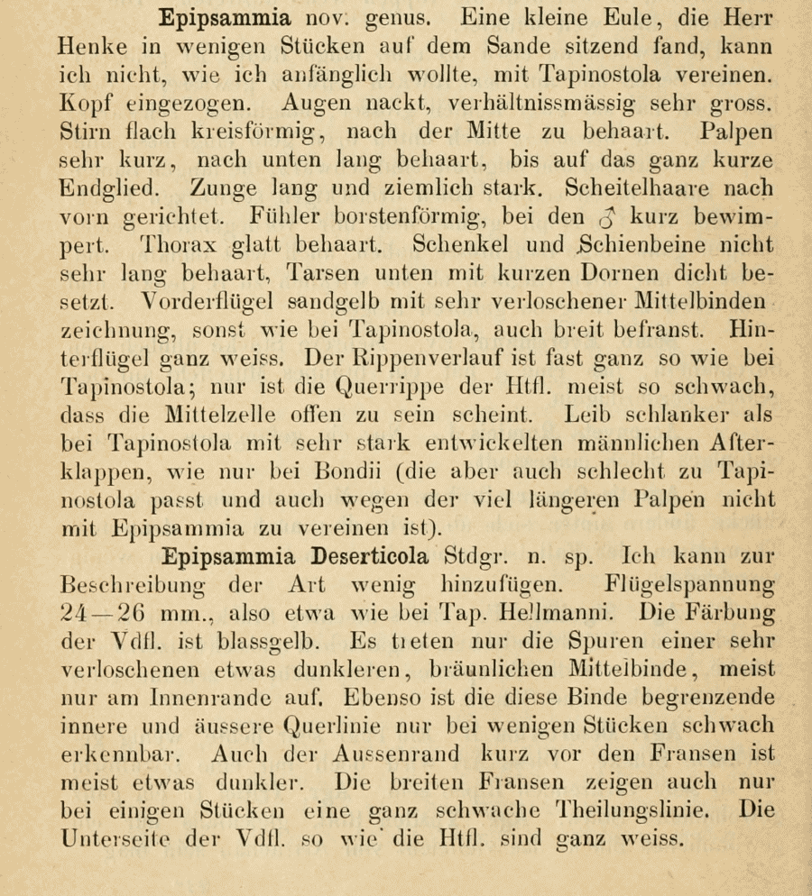 - Epipsammia deserticola STAUDINGER, 1879 [Originalkombination]