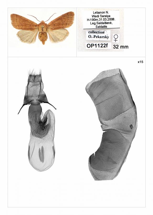 1, ♀: Libanon, Wadi Daraiya, 190 m, 31. März 2008, leg. Saldaitiené, Saldaitis (coll. OP1122f, gen.präp. & fot.: Oleg Pekarsky) [Forum]