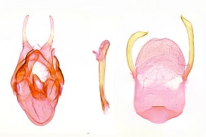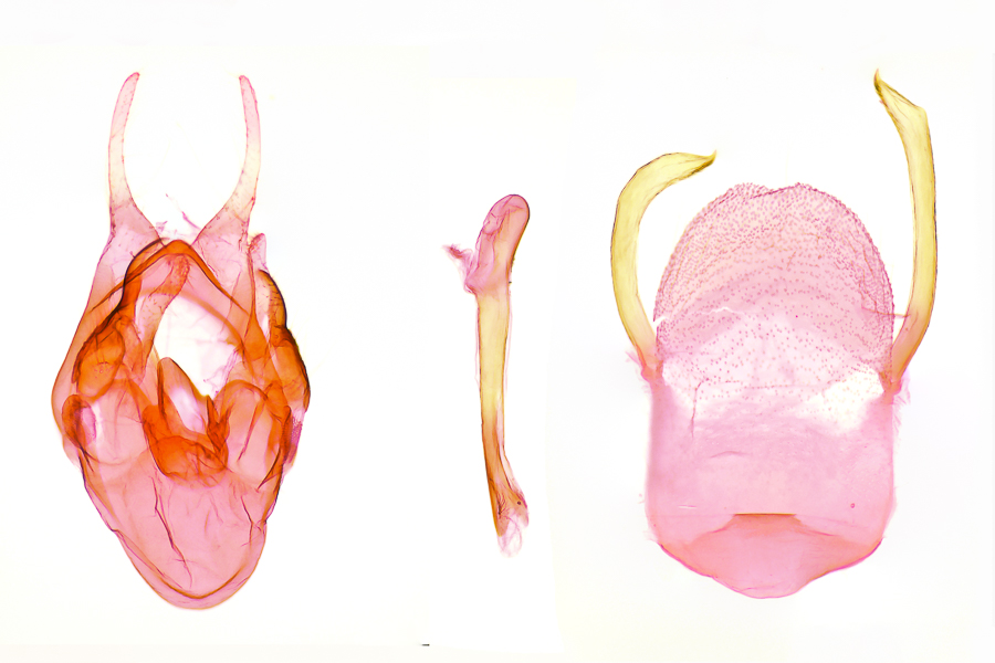 1, Genitalpräparat des als Beleg 3 abgebildeten ♂ (siehe Diagnosebild 3): Ungarn, Villányi-Gebirge, Harkány, 45°51'15.2" N 18°14'02.6" E, e.o. 10. Oktober 1986, leg. ♀ Wingenfeld (gen. präp. und Foto: Harald Lahm)