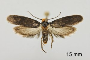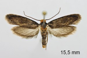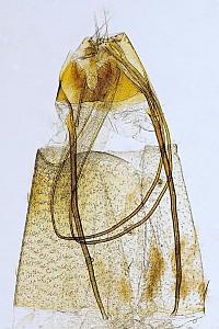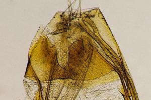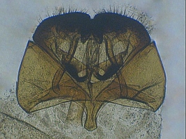 1, Genitalpräparat eines [hier] abgebildeten ♂: Slowakei, Westslowakei, Pohronska Pahorkatina, Hronské Kl'ačany, ca. 140 m, 27. Juli 2011, am Licht (leg. & fot.: František Kosorín), det. Reinhard Gaedike [Forum]