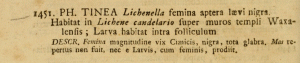 - Tinea lichenella LINNAEUS, 1761 [Originalkombination]