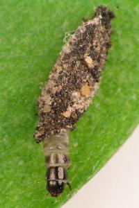 1, Sack mit Puppenexuvie und ♀: Schweiz, Bern, Ins, 430 m, 8. April 1991 Raupensäcke an mit Algen bewachsenen Holzwänden eines Forsthauses, e.p. 14. April 1991 (Studioaufnahme: Rudolf Bryner), leg. & det. Rudolf Bryner [Forum]