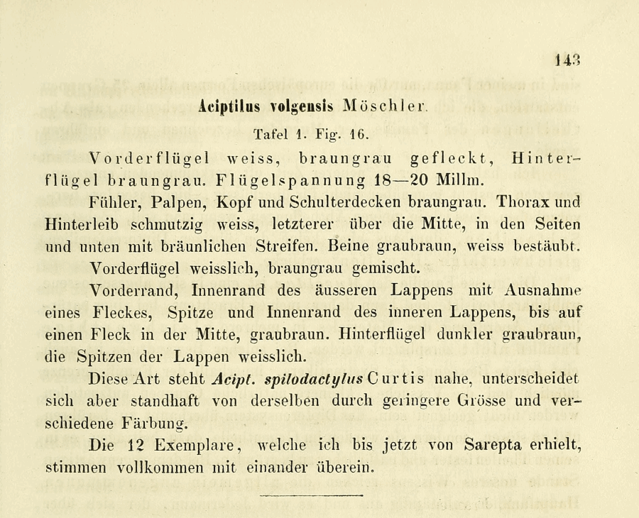 - Erstbeschreibung: MÖSCHLER, H. B. (1862): Neue südrussische Schmetterlinge. Wiener Entomologische Monatschrift 6: 139-143 + Taf. 1.