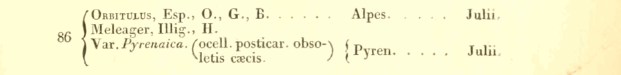 - Lycaena orbitulus pyrenaica BOISDUVAL, 1840 [Originalkombination]