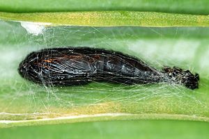 1, Eiablage in Zucht auf der Nahrungspflanze am 2. März 2010: Spanien, Valencia, Calpe, 100 m, 14. Februar 2010 Puppen und Raupen an Meerzwiebel (Urginea maritima), Falterschlupf ab 19. Februar 2010 (leg., cult. & fot.: Herbert Stern), det. Jürgen Rodeland & Rudolf Bryner (leg., cult. & fot.: Herbert Stern) [Forum]