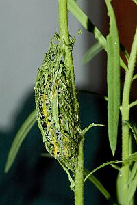 6-8, Kokonbau: Deutschland, Baden-Württemberg, oberer Neckar, Villingendorf bei Rottweil, Nähe Bf Talhausen, 513 m, Raupenfund an Linaria vulgaris am 8. September 2009 (Studiofotos am 10. September 2009: Peter Lacha), det. Peter Lacha [Forum]