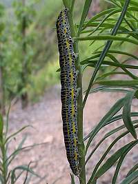 4, parasitierte Raupe: Deutschland, Niedersachsen, Rodenberg, Vorgarten mit wenigen Pflanzen Linaria spec., 90 m, 9. September 2013 (Foto: Tina Schulz) [Forum]