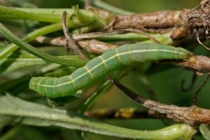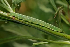 2-3: Italien, Friuli, Carso Triestino, 65 m, 3. Oktober 2013, Raupen an Schuppenkopf (Cephalaria leucantha), (leg., cult. & Fotos: Helmut Deutsch) [Forum]