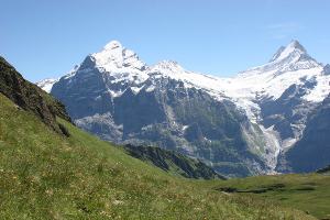 1: Schweiz, Kt. Bern, Grindelwald, Blick vom Faulhorn (2400 m) in die Umgebung von Grindelwald. In der Bildmitte der Grindelwaldgletscher.